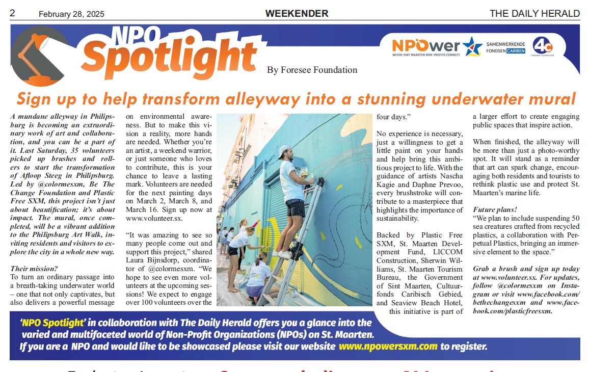 To turn an ordinary passage into a breathtaking underwater world. One that not only captivates but also delivers a powerful message on environmental awareness. But to make this vision a reality, more hands are needed. Whether you're an artist, a weekend warrior, or just someone who loves to contribute, this is your chance to leave a lasting mark. Volunteers are needed for the next painting days on March 2, March 8, and March 16. Sign up now at www.volunteer.sx .