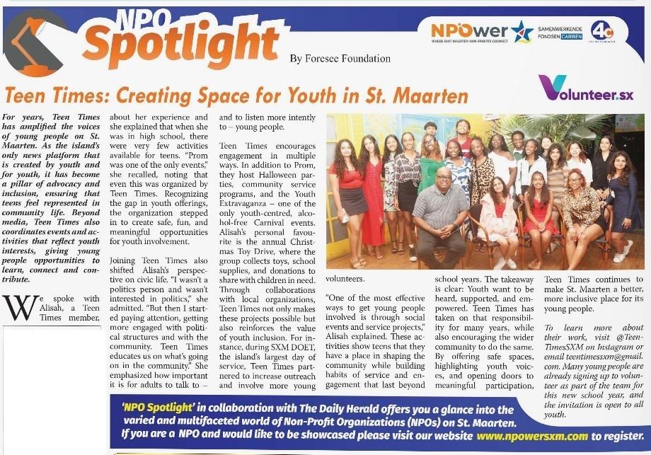 To learn more about their work, visit @TeenTimesSXM on Instagram or email [email protected]. Many young people are already signing up to be part of the new school year’s team - and the invitation is open to all youth.
