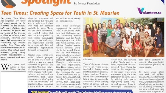 To learn more about their work, visit @TeenTimesSXM on Instagram or email [email protected]. Many young people are already signing up to be part of the new school year’s team - and the invitation is open to all youth.